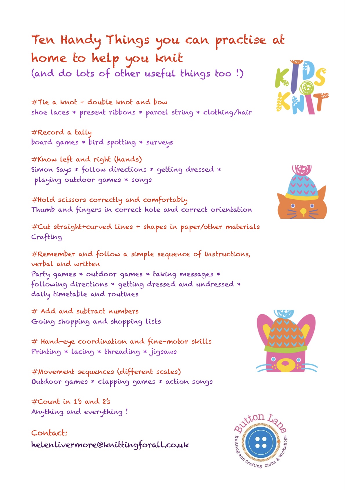 Children will be guided through knitting projects matched to their skill-set, collecting stickers as they progress, for projects completed and skills accomplished.